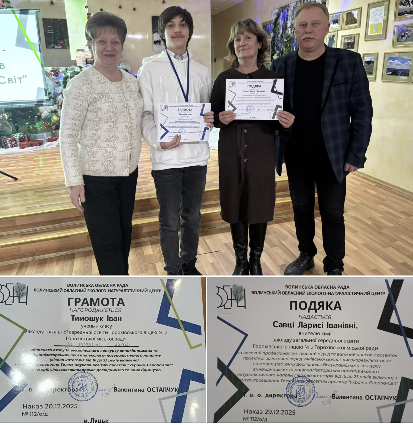 Щиро вітаємо Галину Йосифівну, Ларису Іванівну та її вихованця із заслуженим визнанням і бажаємо нових звершень, натхнення та подальших успіхів у реалізації екологічних ідей. Висока оцінка — це результат системної праці, наполегливості й любові до справи.